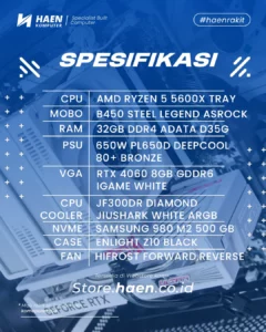 Rp7.450.000Rakitan PC AMD Ryzen 5 5600X | RTX 4060 8GB GDDR6 Igame White | Samsung 980 M2 500 GB