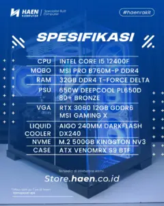 Rp11.450.000Rakitan PC Intel Core I5 12400F | RTX 3060 12GB Msi Gaming X | 32Gb DDR4 Delta T-Force | MIDNIGHT