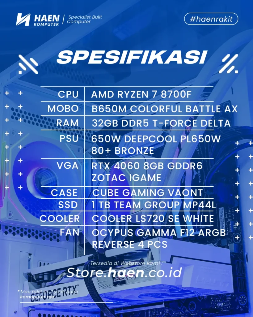 Rakitan AMD RYZEN 7 8700F | VGA RTX 4060 8GB GDDR6 ZOTAC | NVME 1 TB ADATA XPG