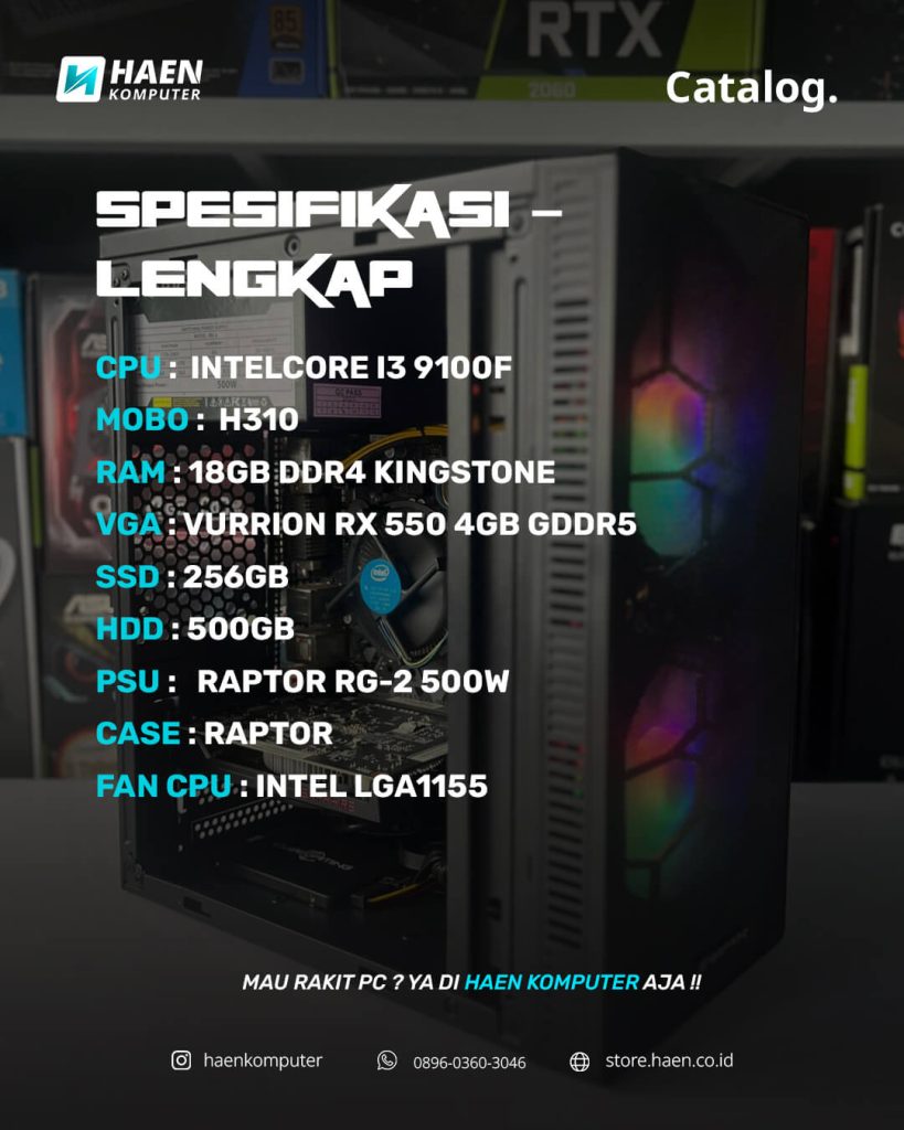 PC Rakitan Intel i3 9100F Radeon RX 550 256GB SSD