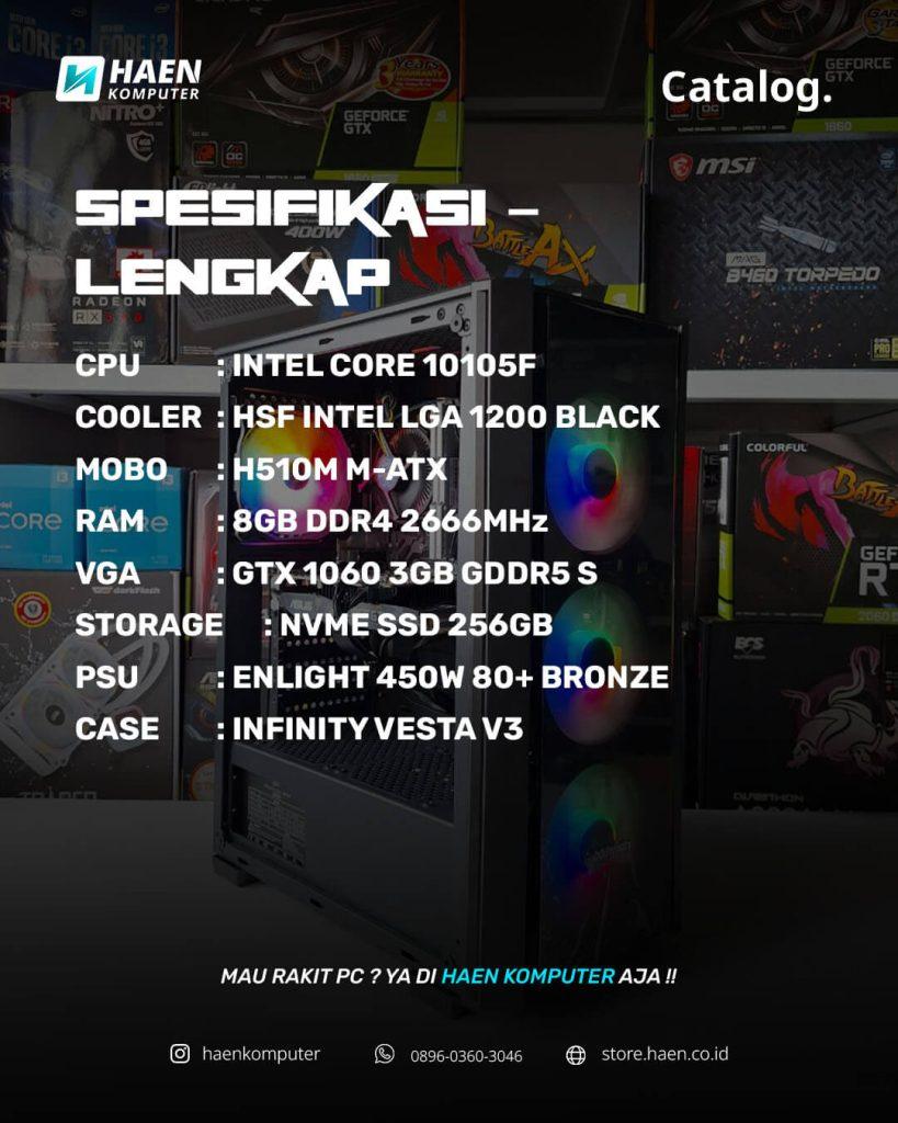 PC Rakitan Intel i3 10105F GTX 1060 3GB GDDR5 256GB SSD 8GB RAM – Aquaron V106