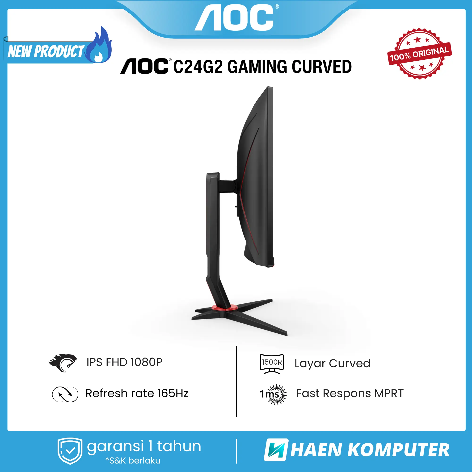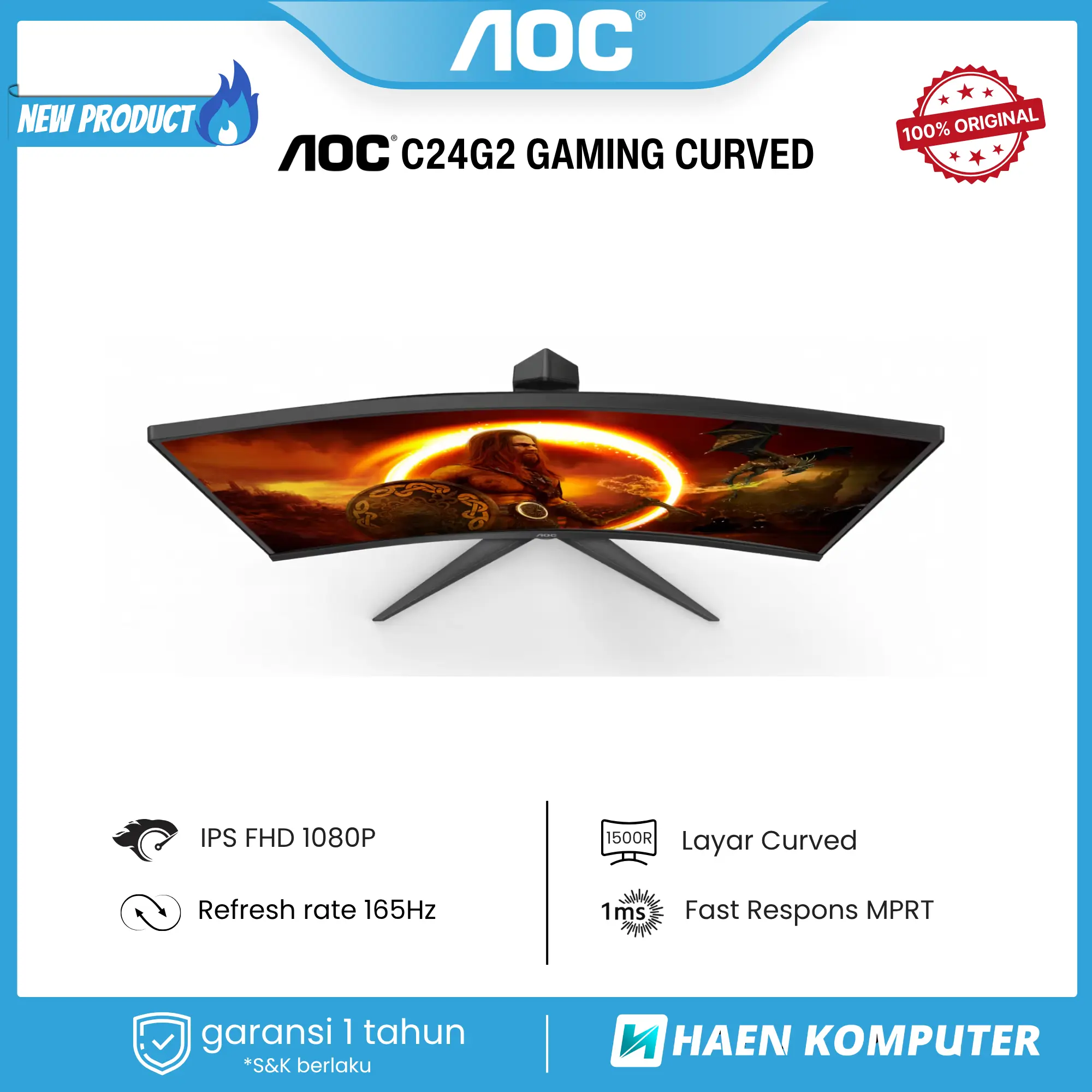 Rasakan sensasi gaming lebih imersif dengan AOC C24G2 24” Curved 165Hz!