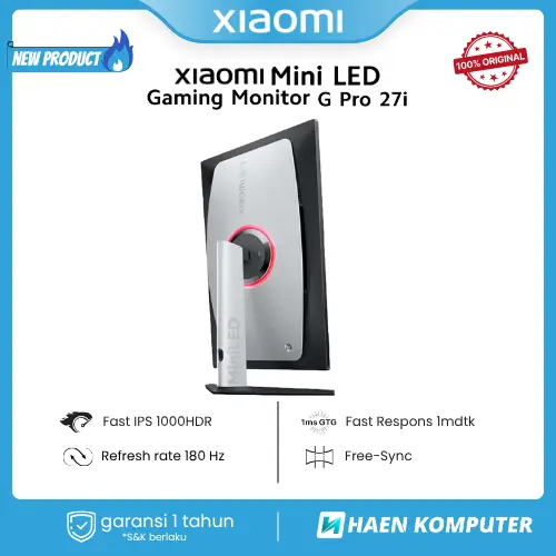 Monitor Xiaomi G Pro 27i Mini LED Gaming 27″ adalah jawaban untuk para gamer dan content creator yang menginginkan visual luar biasa dengan akurasi profesional. Mengusung teknologi panel Fast IPS dan pencahayaan Mini LED, monitor ini menghadirkan tingkat kecerahan hingga 1000 nits serta resolusi QHD 2K yang tajam dan mendalam. Dengan refresh rate tinggi 180Hz dan response time 1ms, setiap gerakan di layar terasa mulus dan presisi—ideal untuk game kompetitif maupun editing video berkualitas tinggi.